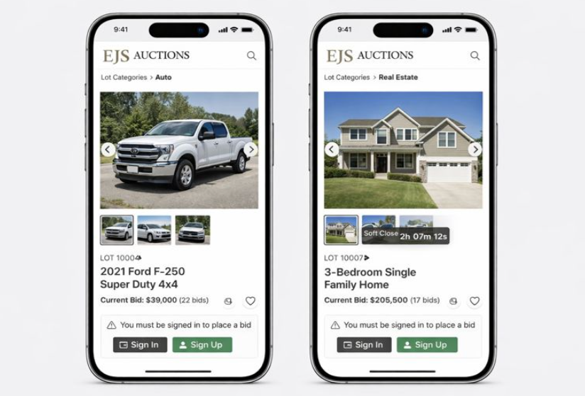 Live updates so bidders always see the current high bid and time remaining.Timed & Live Simulcast Auctions